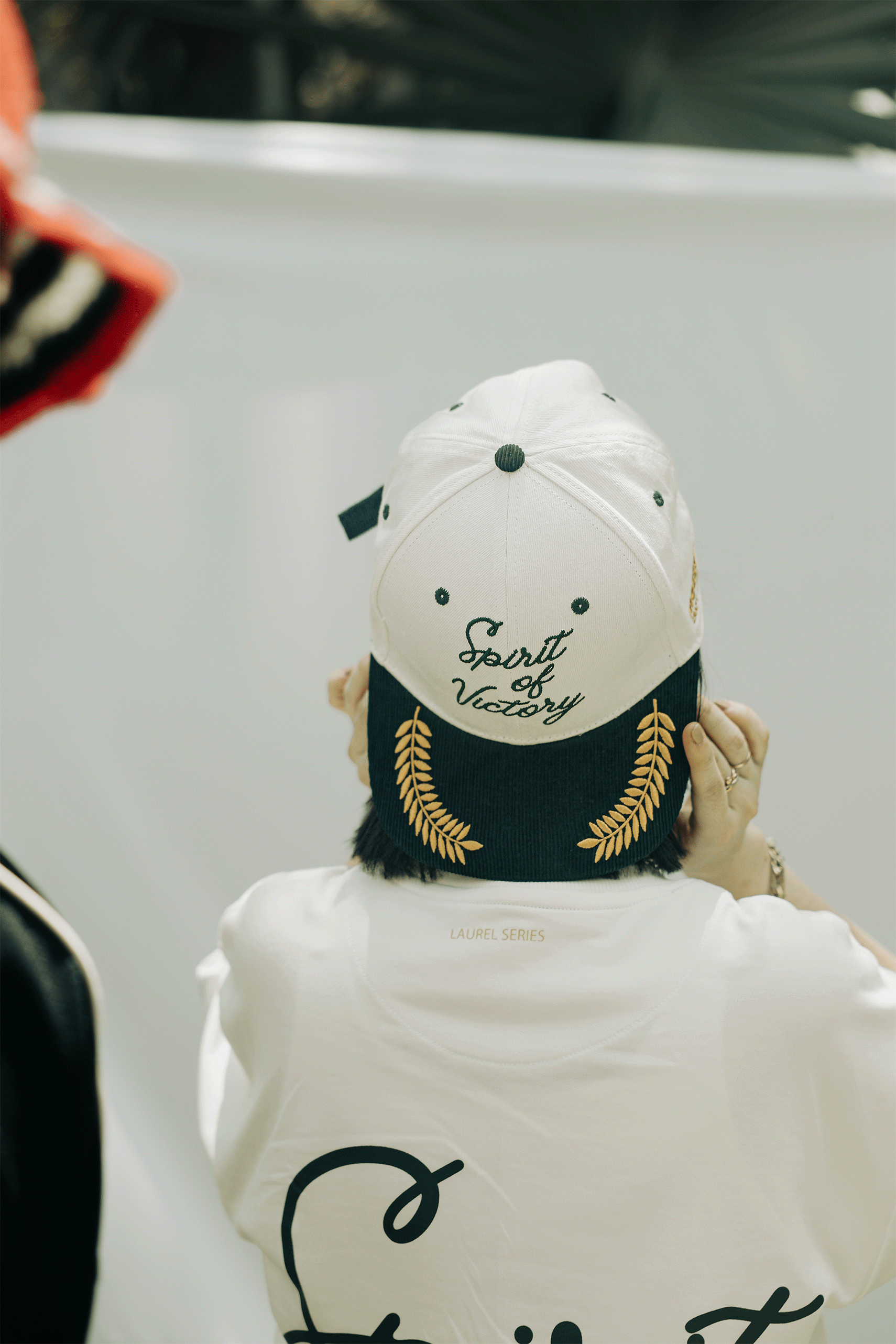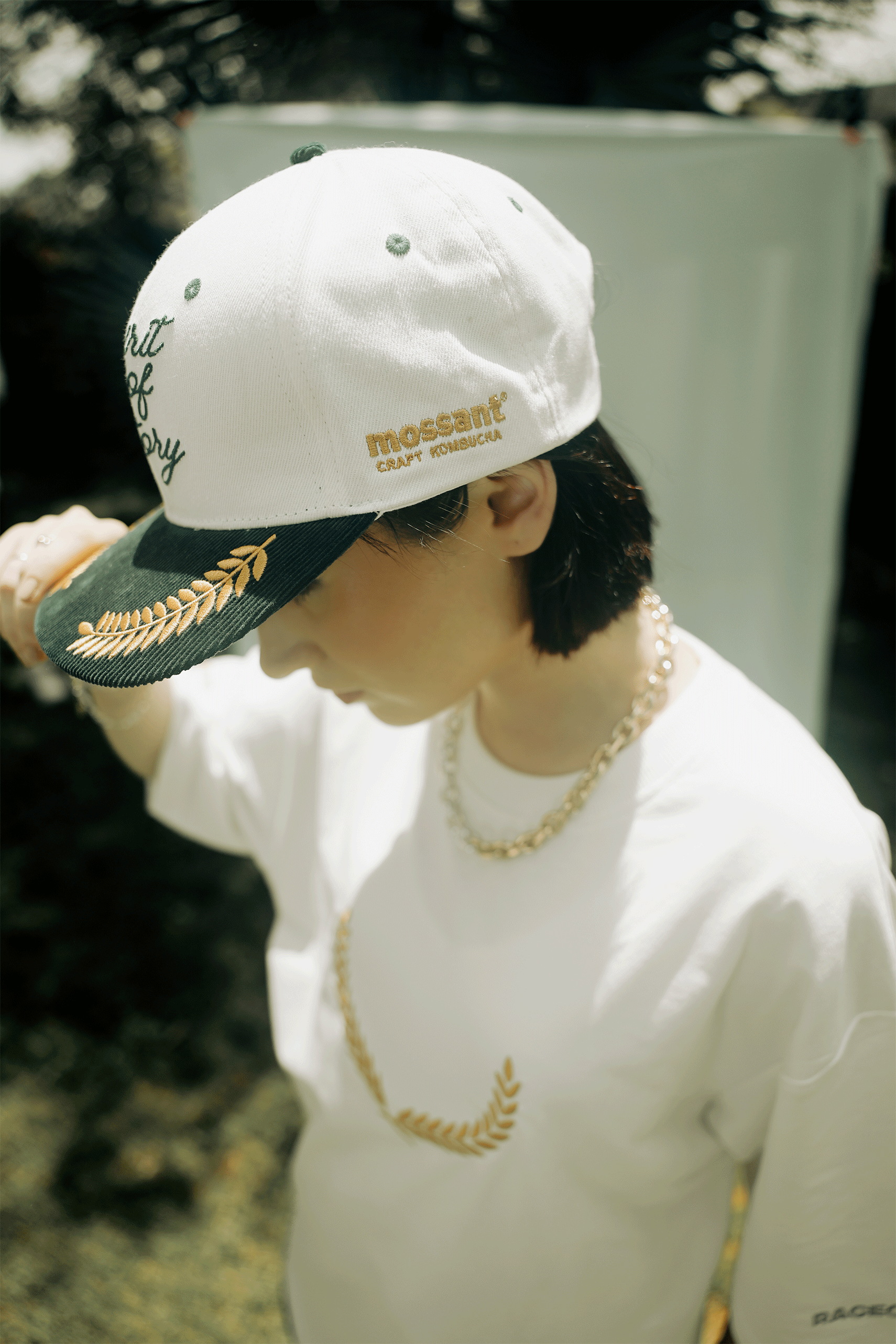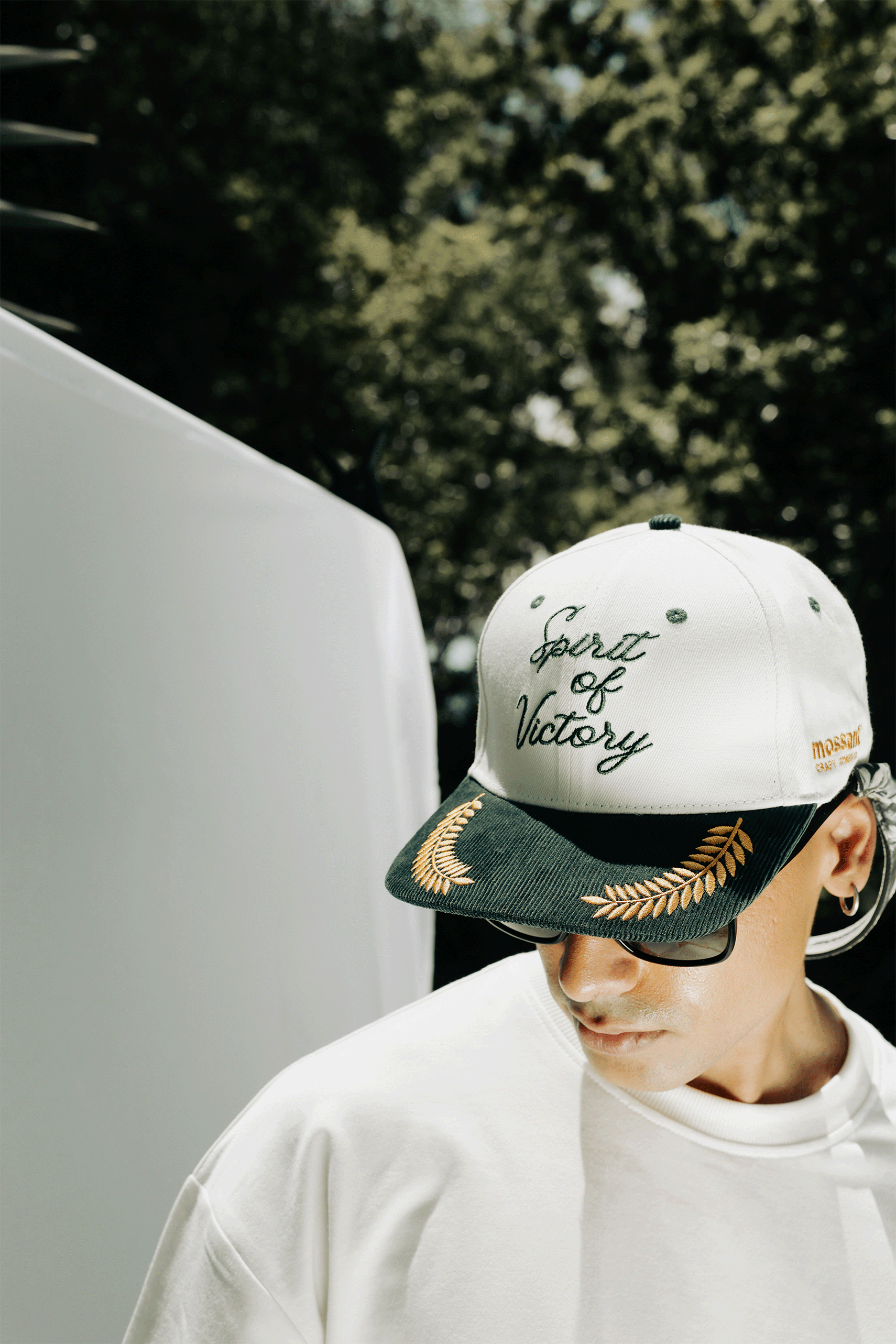 The White Victory Lane Classic Cap is a timeless addition to the Raceorbit x Mossant Laurel Series. This classic 6-panel cap features a crisp white 100% cotton twill crown, the perfect canvas for your achievements. The luxuriously soft green 14-wale corduroy visor adds a subtle touch of sophistication, elevating this essential.