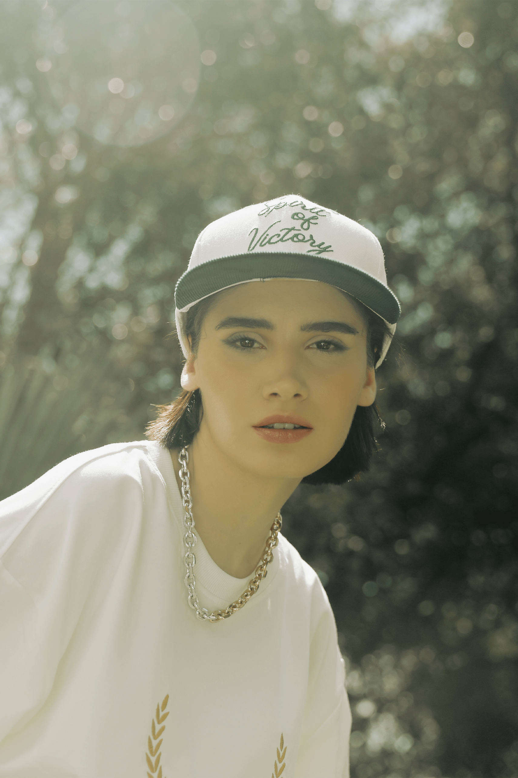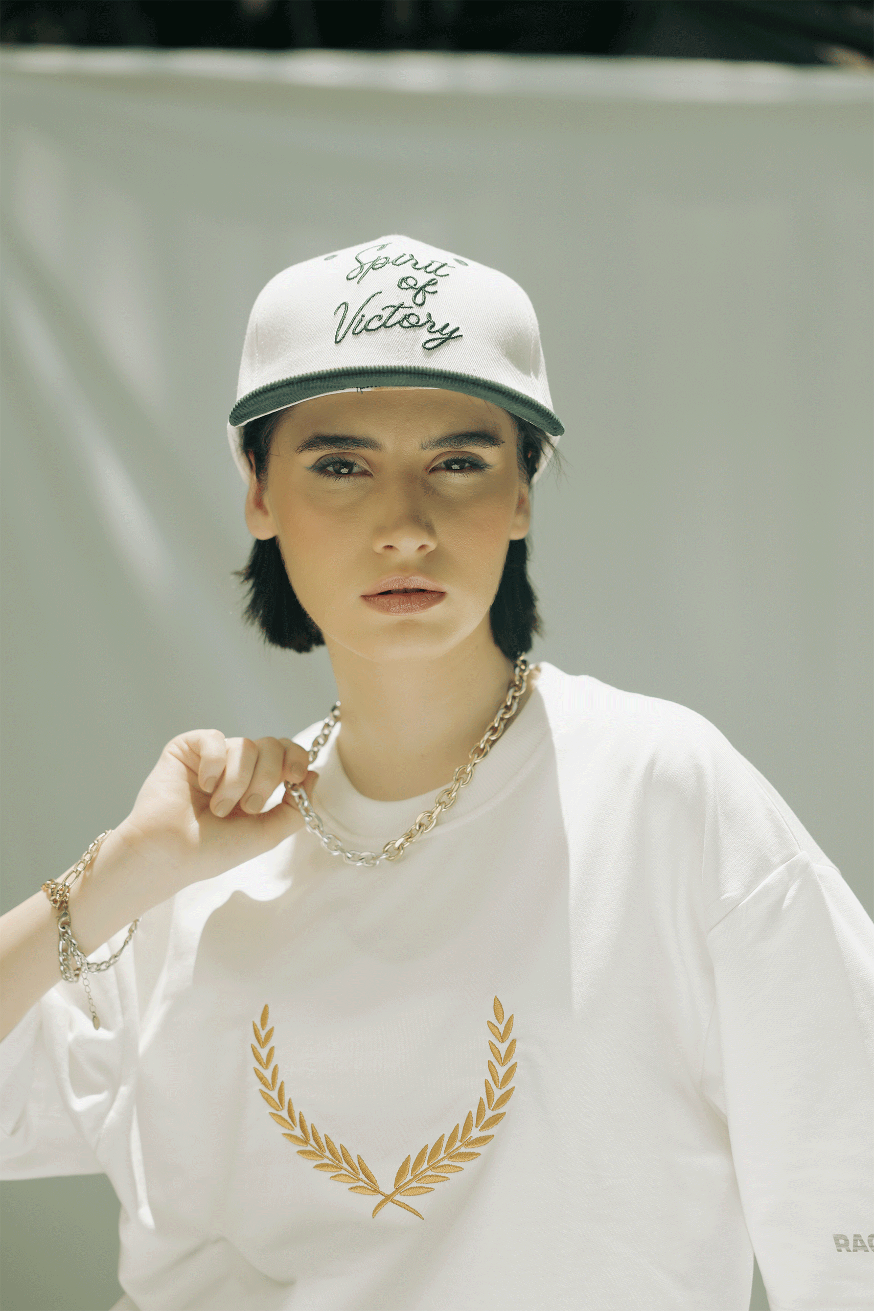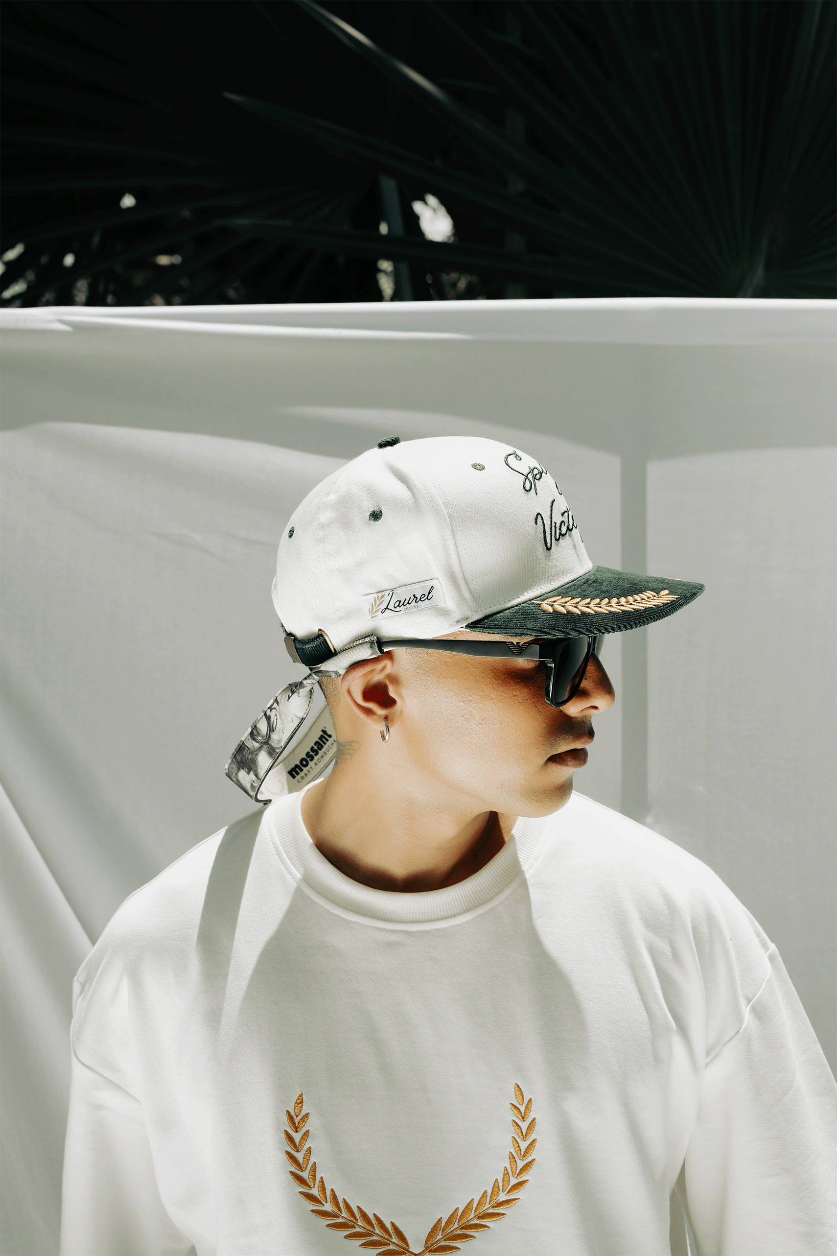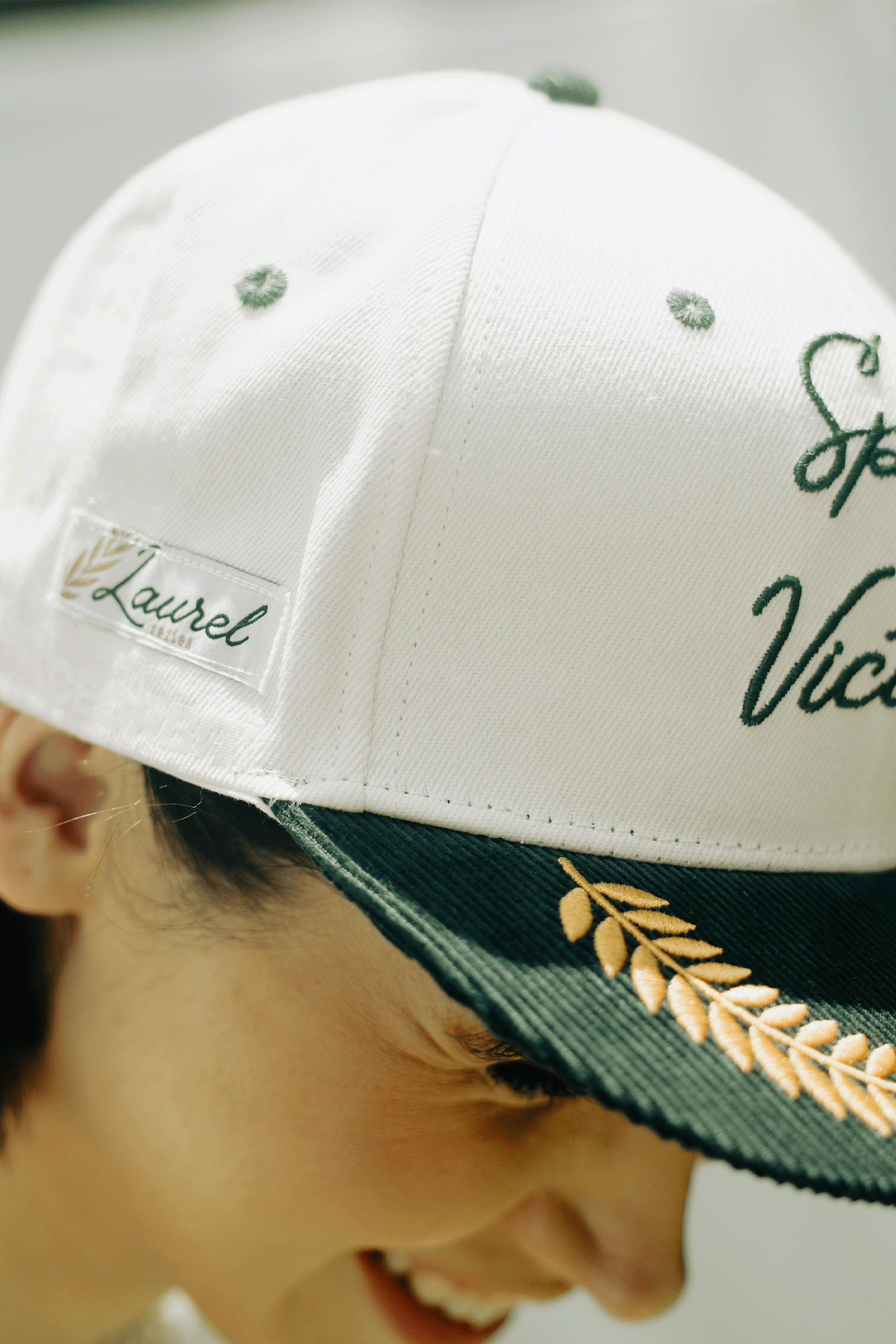 The White Victory Lane Classic Cap is a timeless addition to the Raceorbit x Mossant Laurel Series. This classic 6-panel cap features a crisp white 100% cotton twill crown, the perfect canvas for your achievements. The luxuriously soft green 14-wale corduroy visor adds a subtle touch of sophistication, elevating this essential.