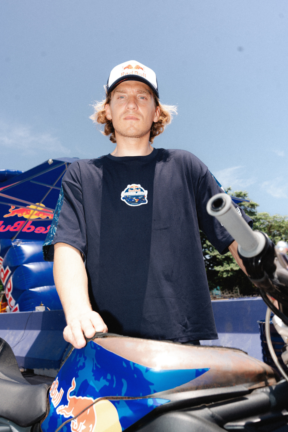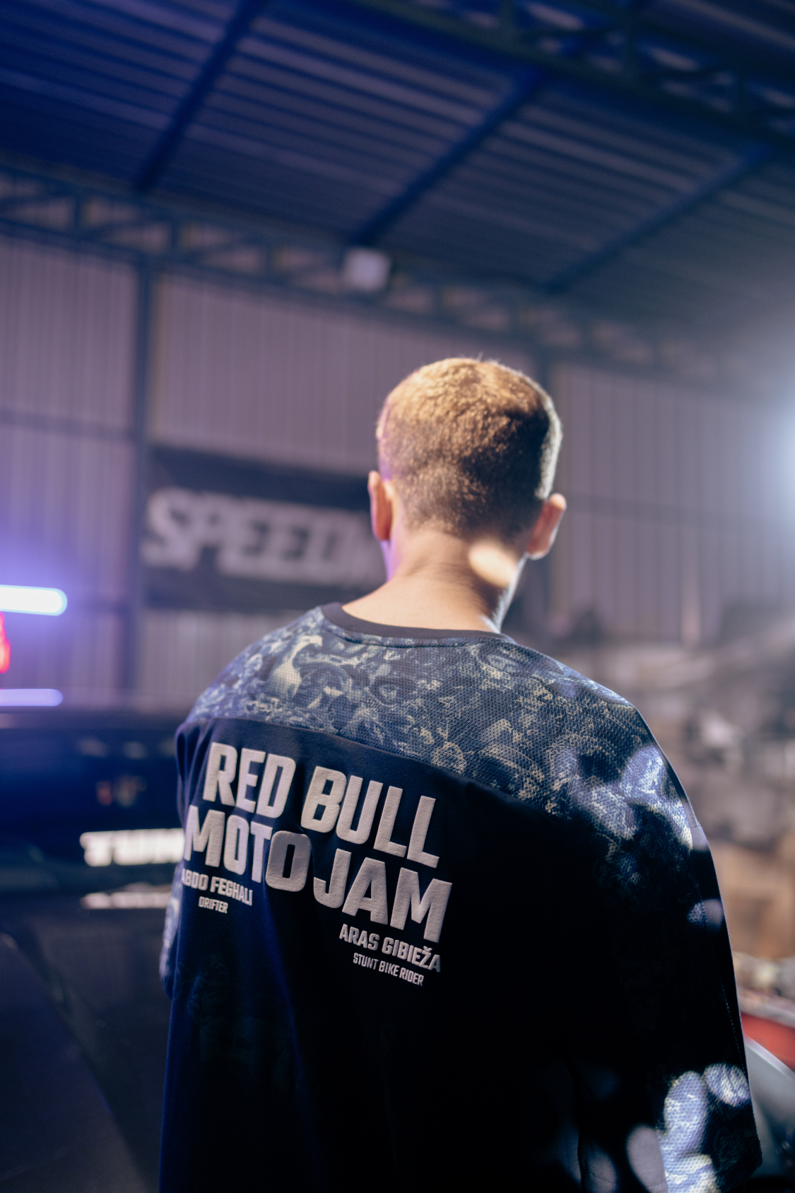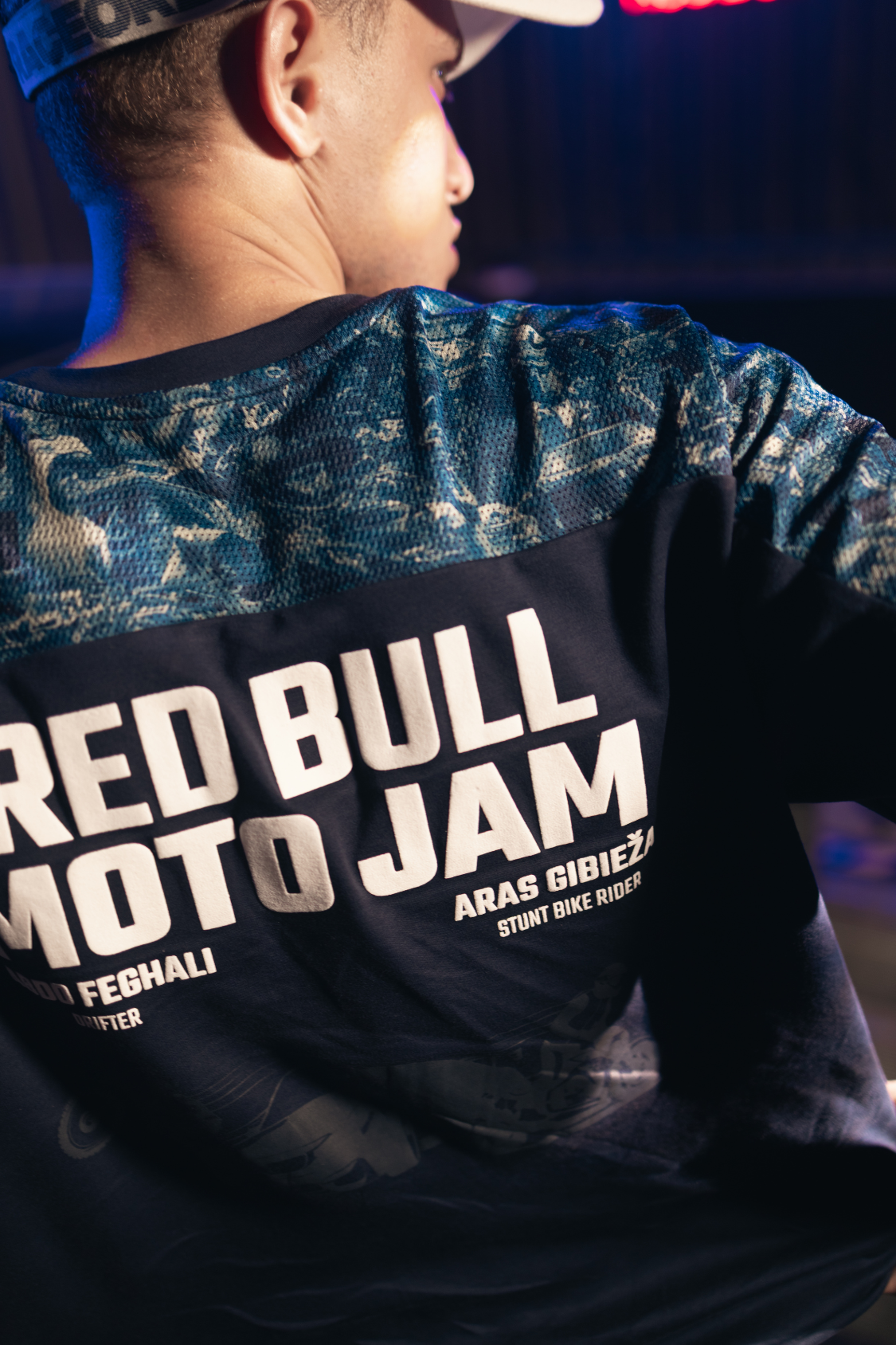 Features a sublimated mesh panel capturing Red Bull Motojam’s raw energy—real action, no edits.